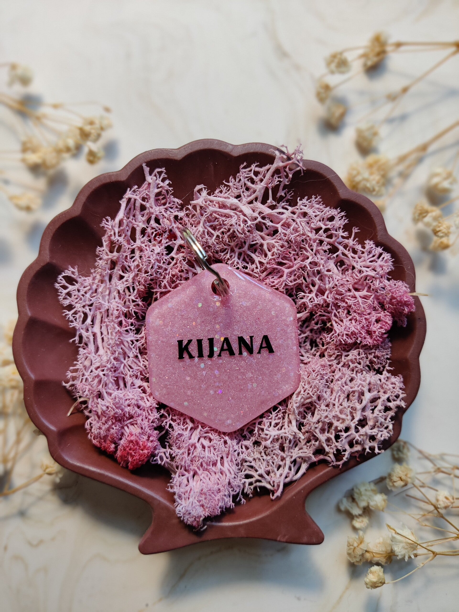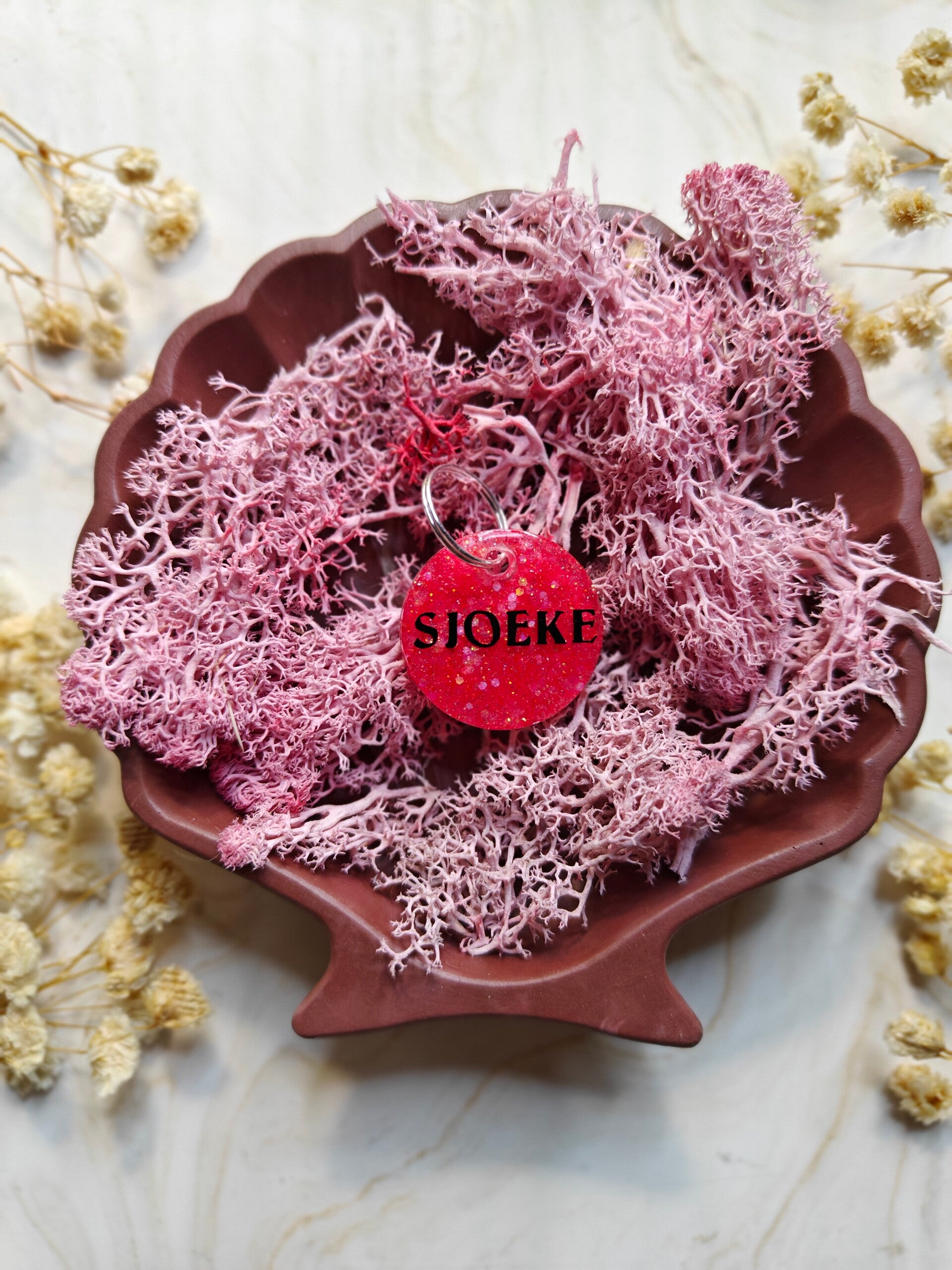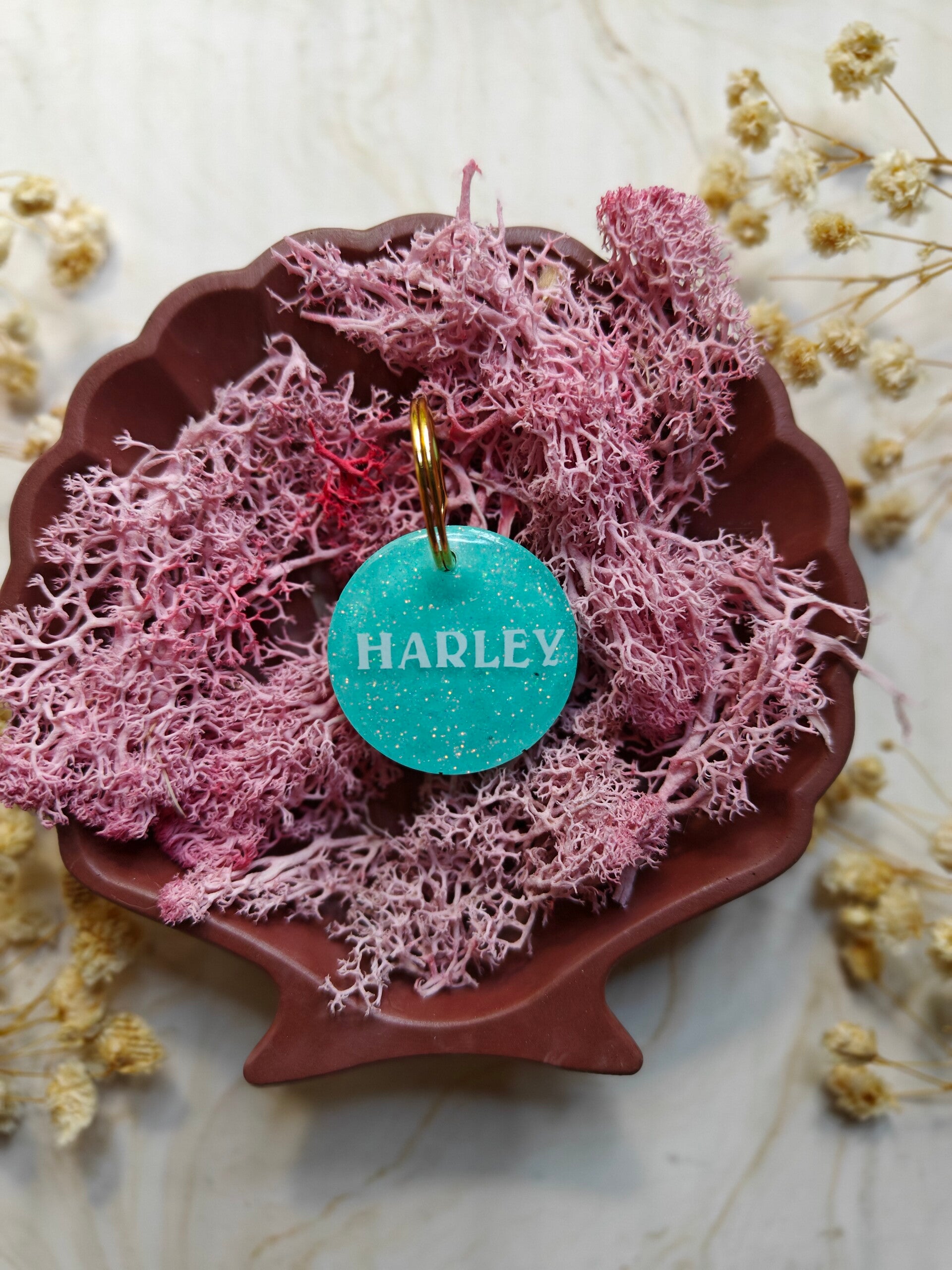 Who doesn't love this translucent glitter tag. Phone number can be on the back. Keep in mind this collection is limited edition, gone = gone. The tags are available in the sizes S-XL