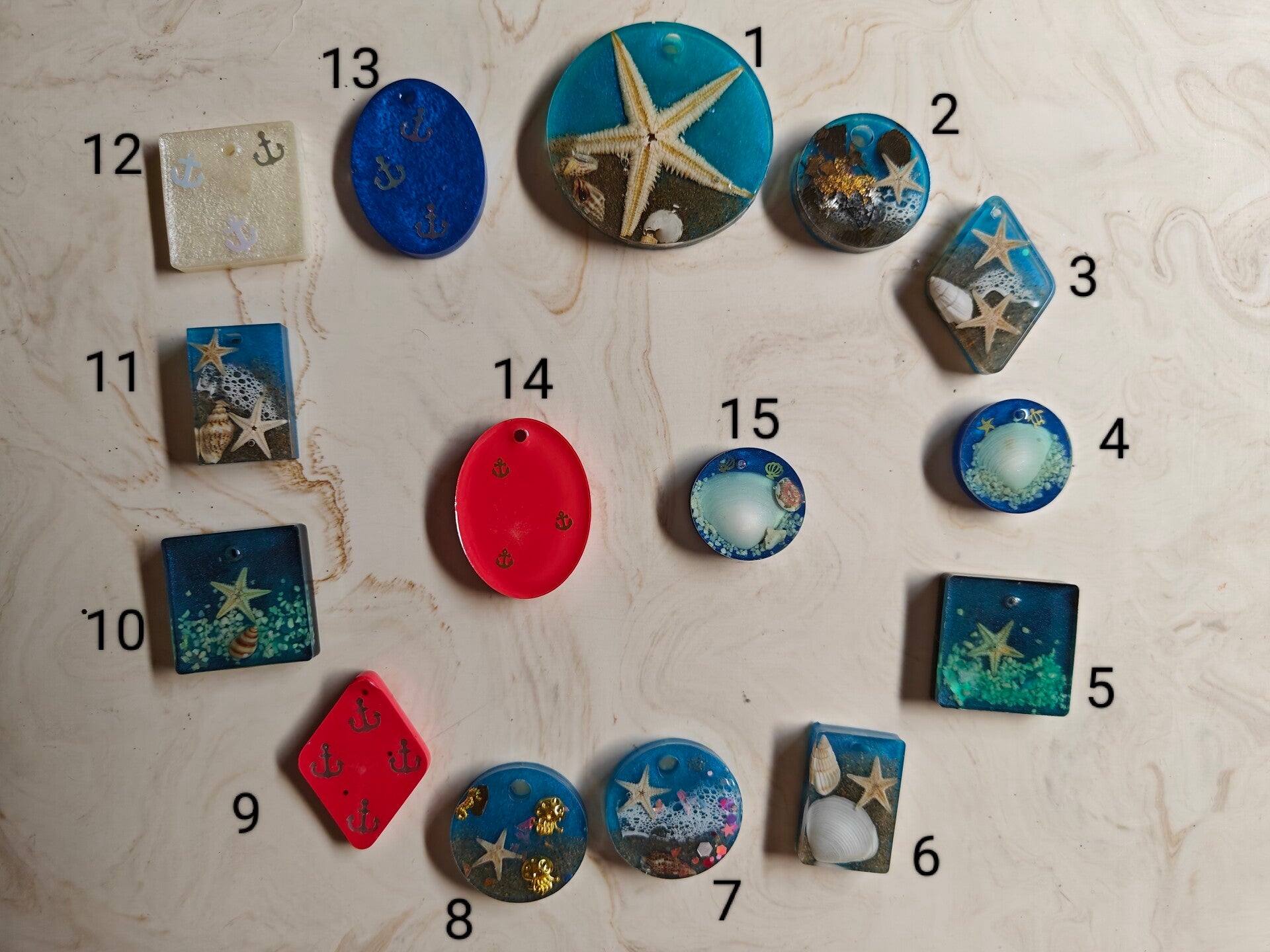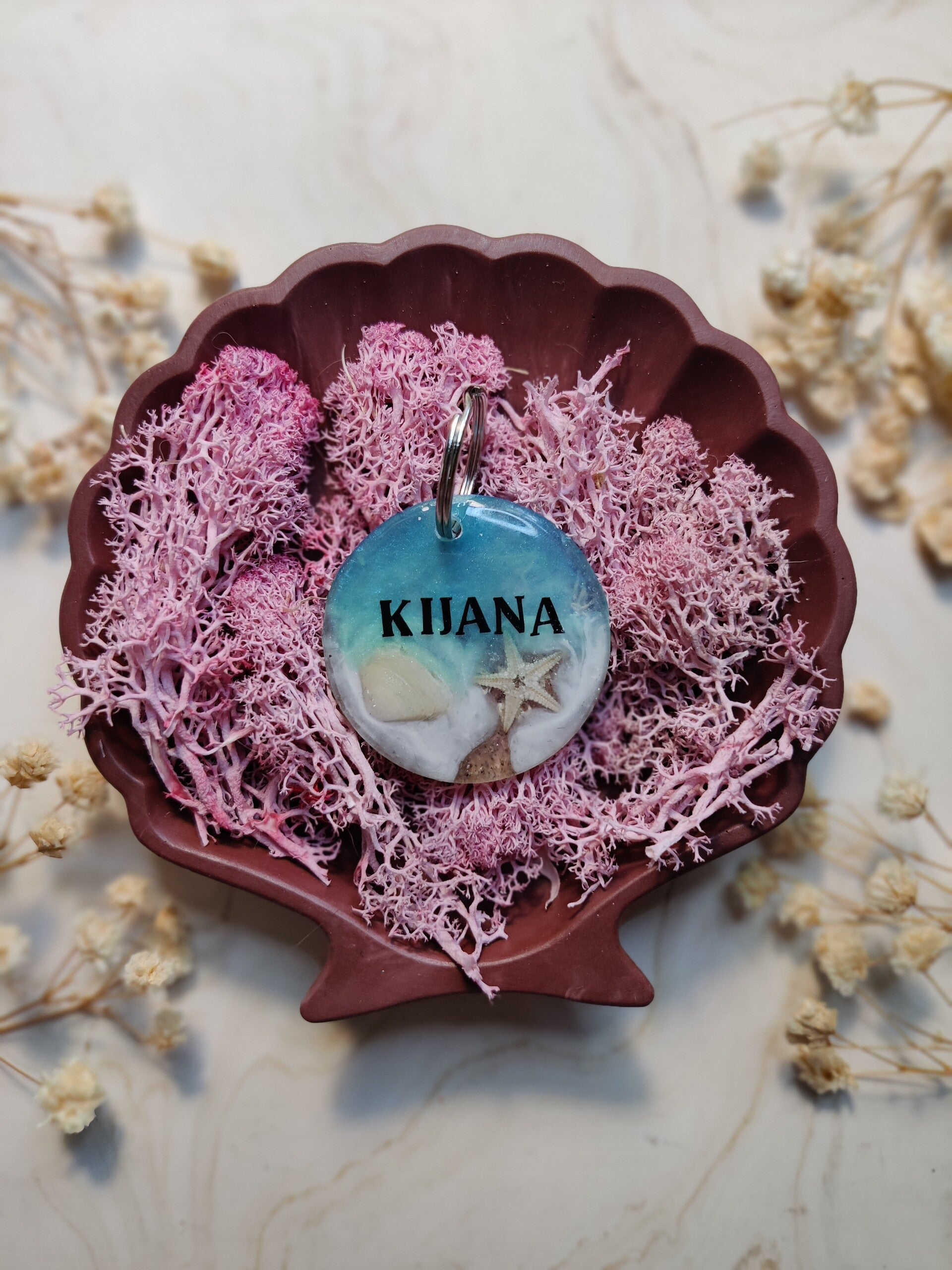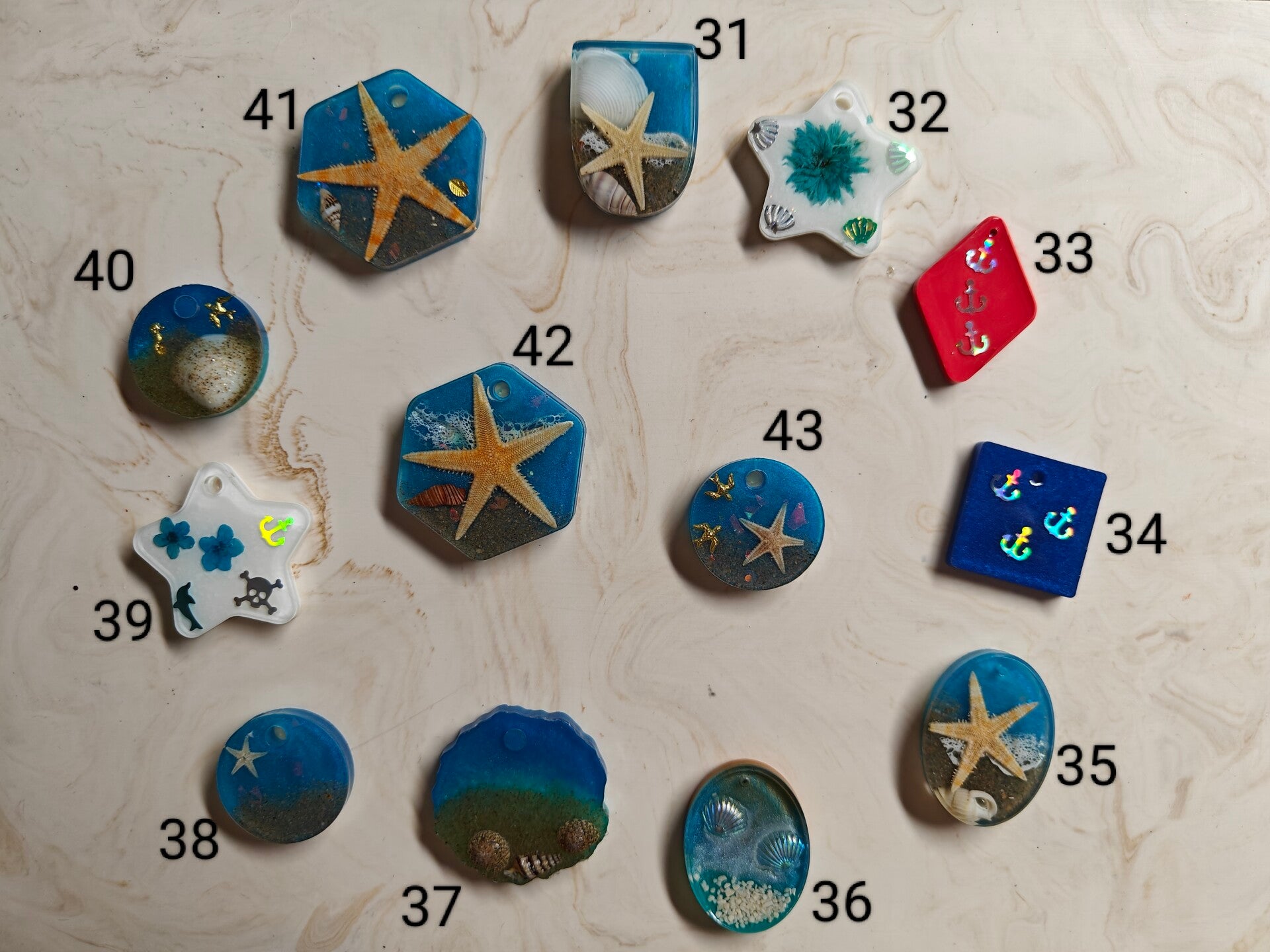 The Under the Sea is a summer themed collection. Ech tag is unique, either with seashells, sequins, starfish, a combination and real sand.