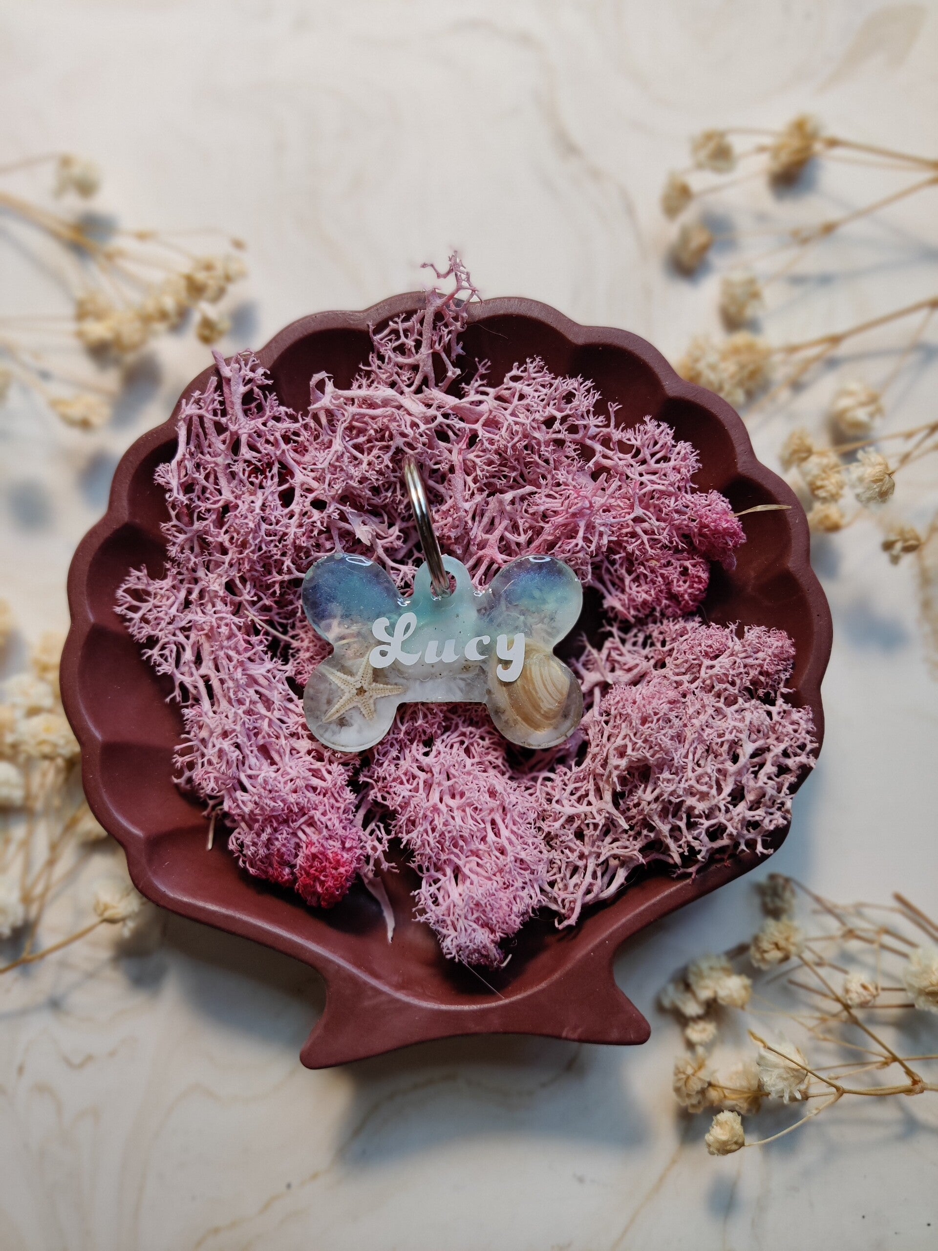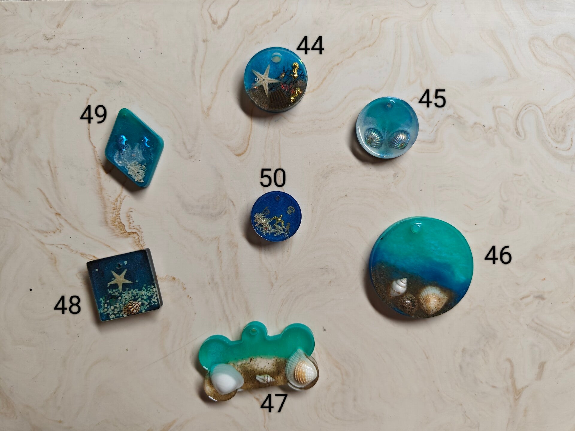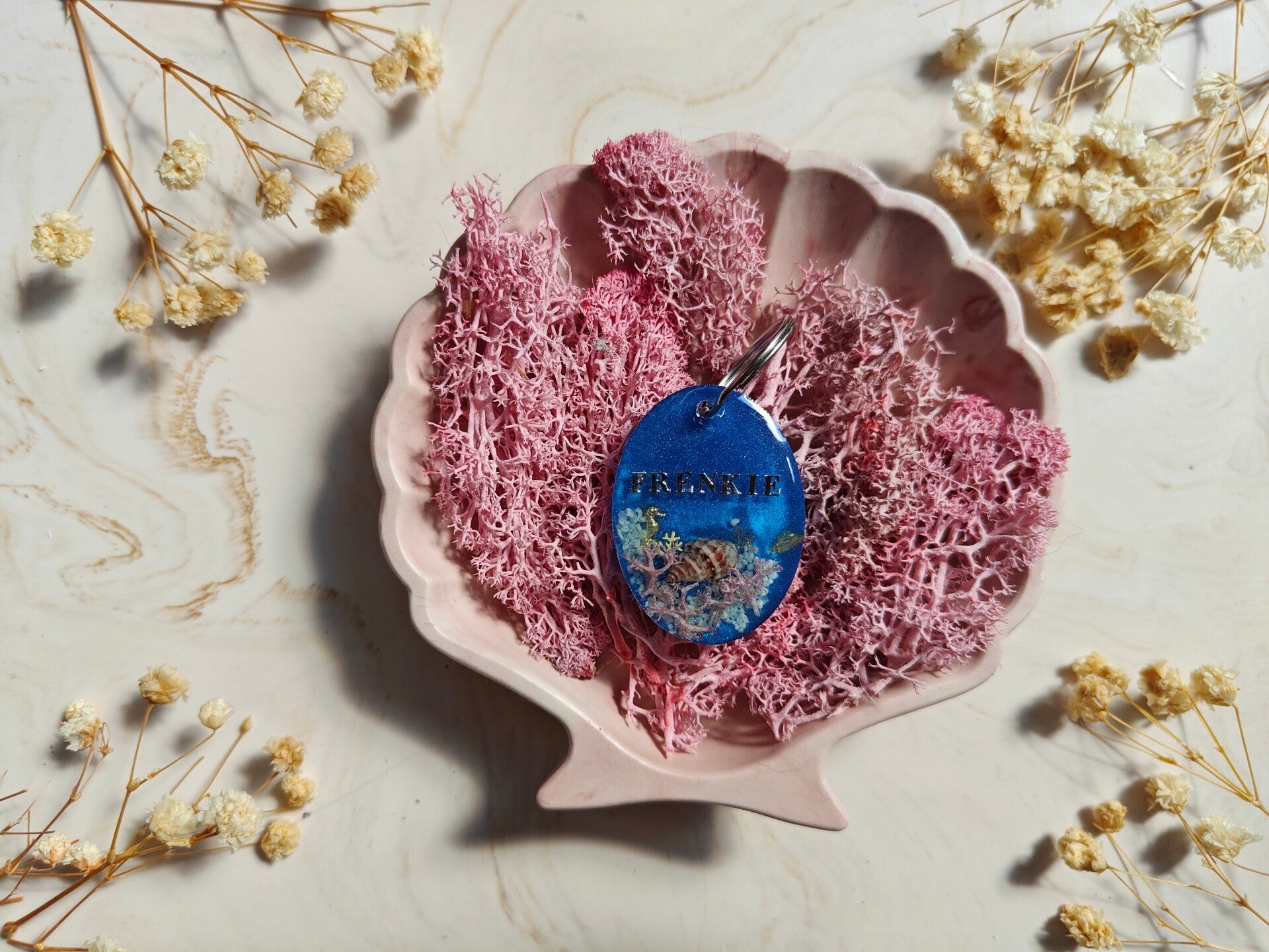 The Under the Sea is a summer themed collection. Ech tag is unique, either with seashells, sequins, starfish, a combination and real sand.