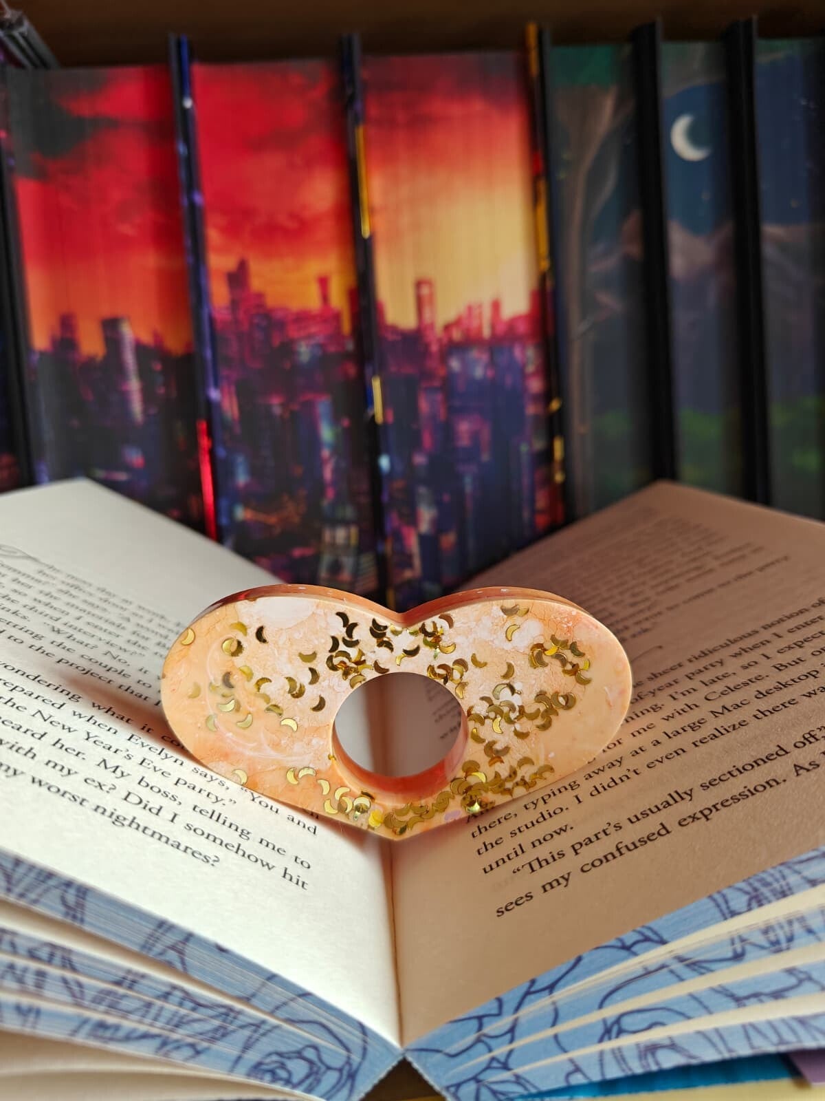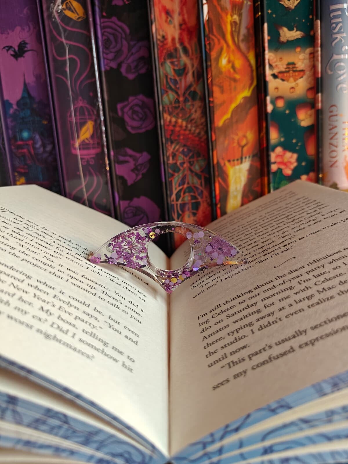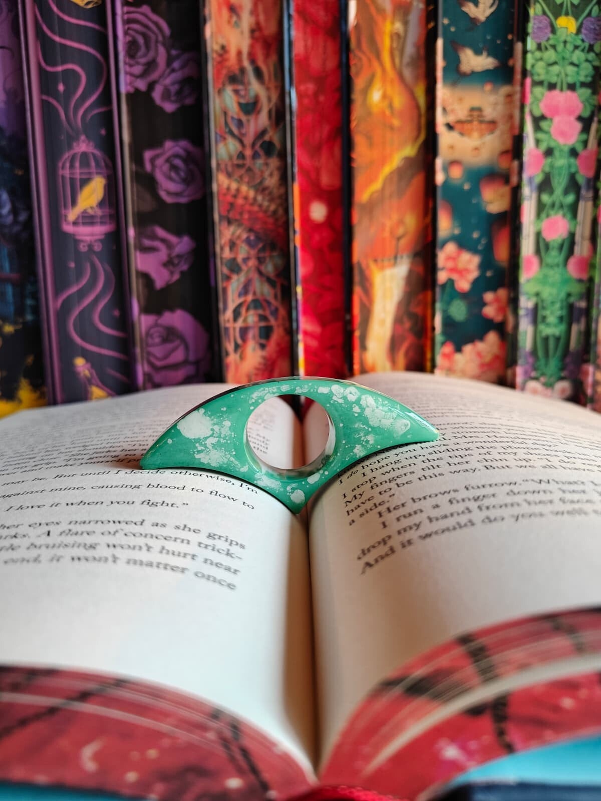 Discover our unique book page holders. Say goodbye to tired fingers while reading! Each page holder is handcrafted with care, with its own shape and color, making every piece one of a kind.