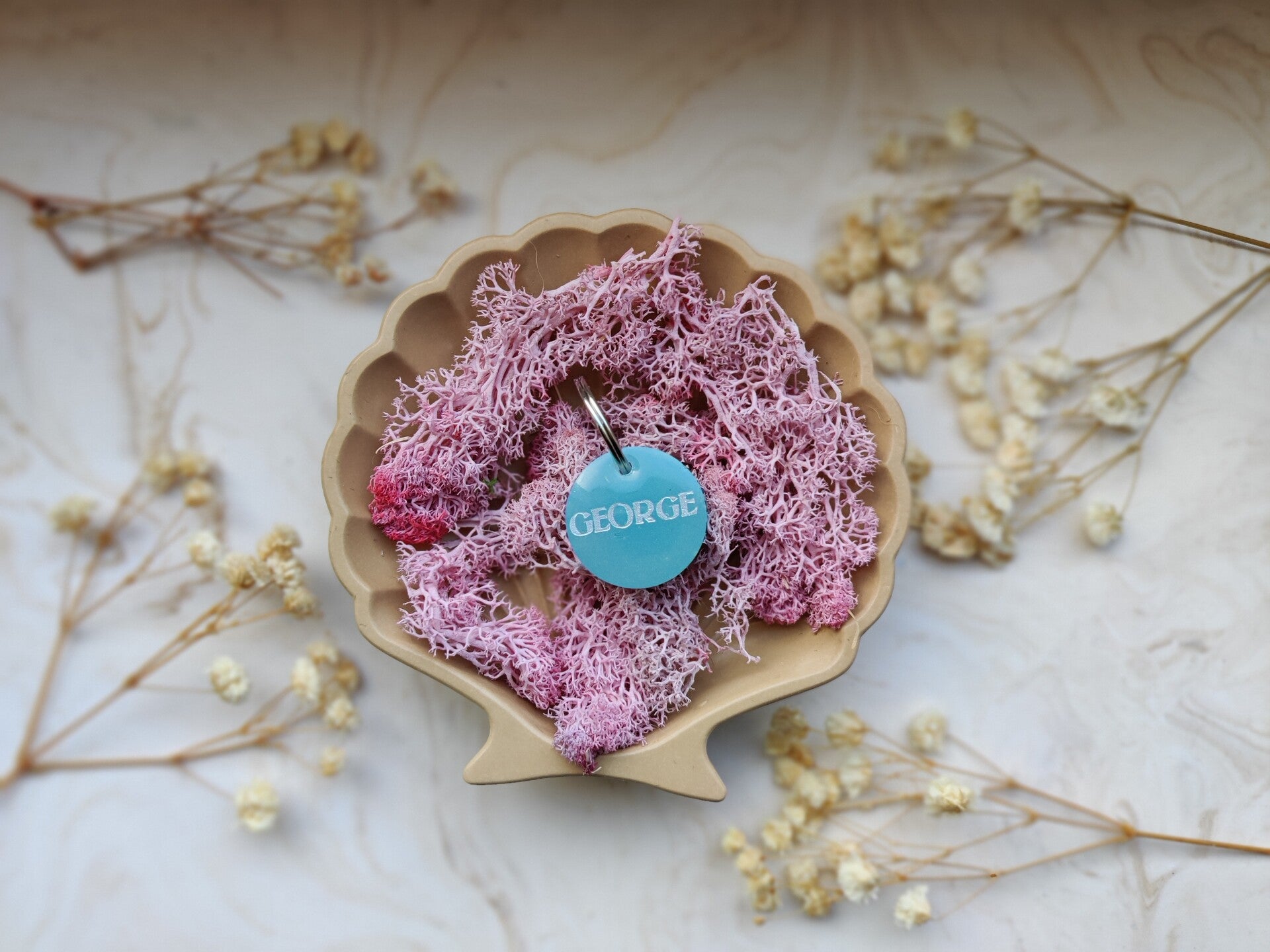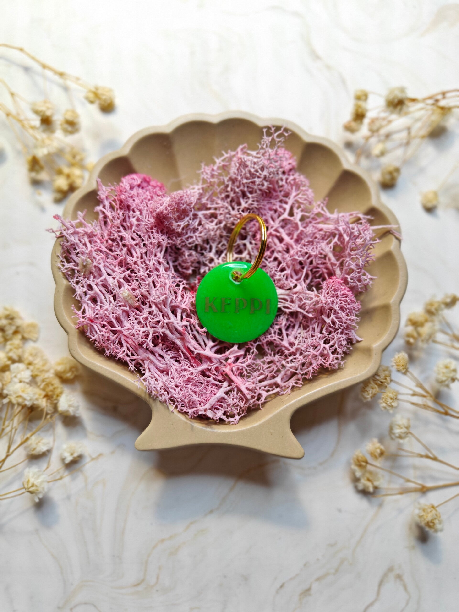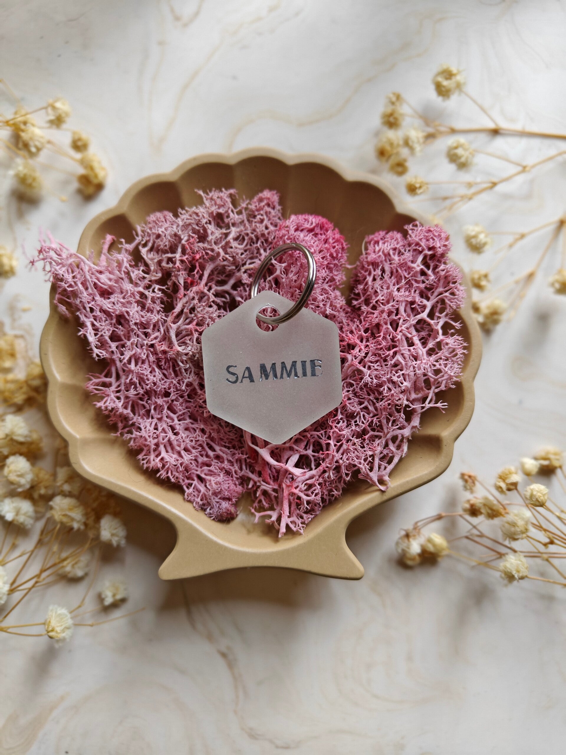 With the Neon tag you choose your colour, shape, name, flakes, letter colour, the style of the name and if you want shadow added or not. The flakes are optional. PPhone number can be added on the back. The tag has a neon colour with a matching basic colour so that you don't see the phone number. Unless stated that you do not want a phone number on the back or basic colour on the back.