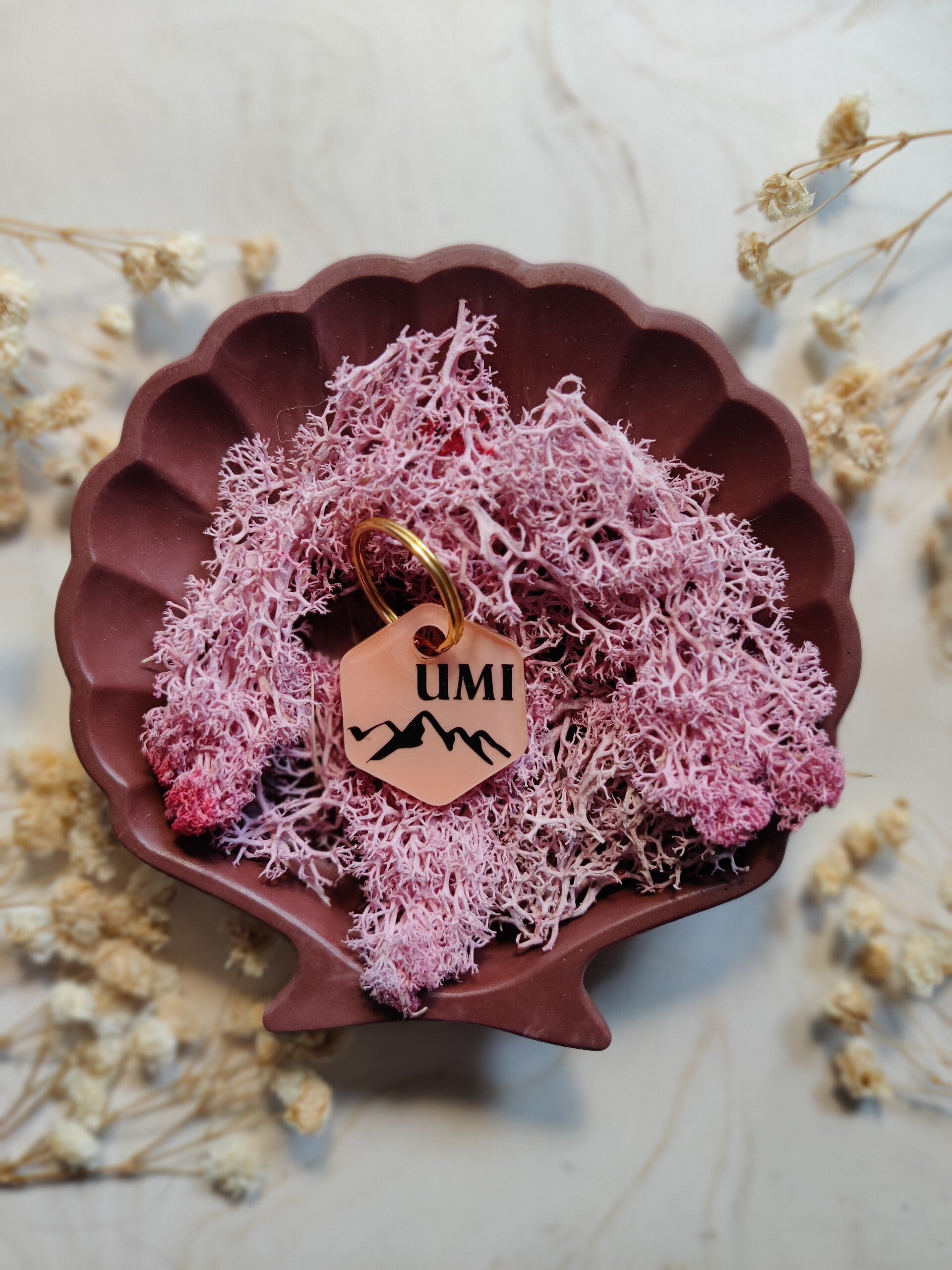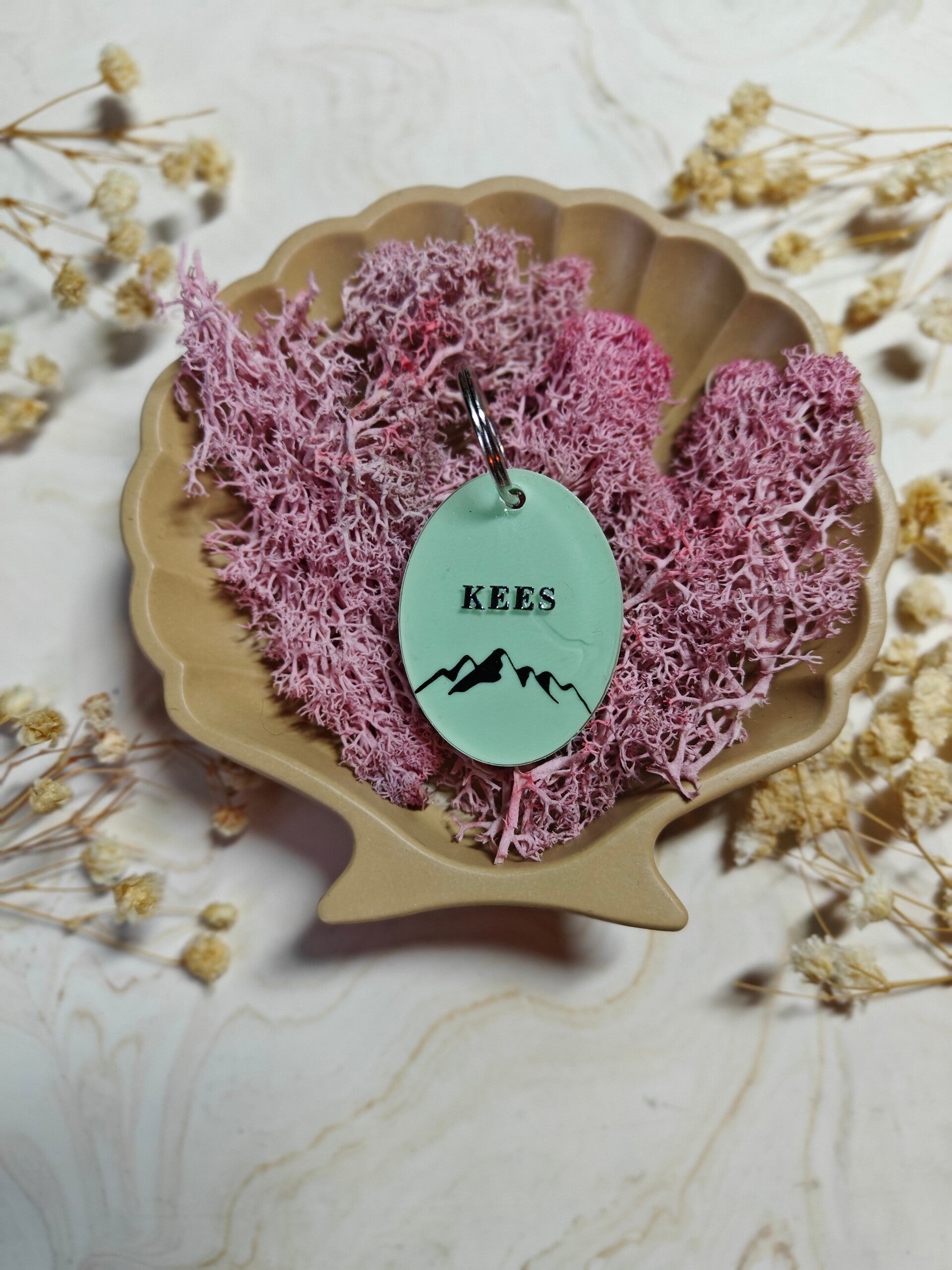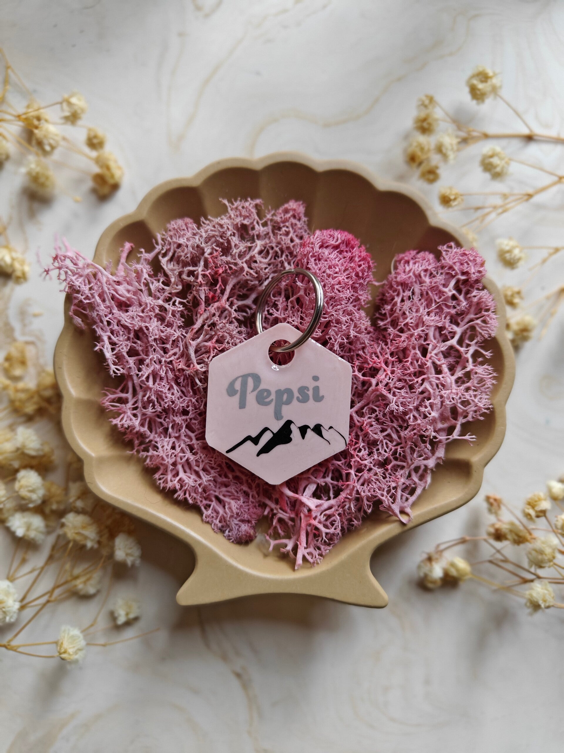 With the Mountain tag you choose your colour, shape, name, name style, if you want a shadow or not and letter colour. Phone number can be on the back. This tag is perfect for the dogs who love to go into the mountains or perfect for families who like to hike.