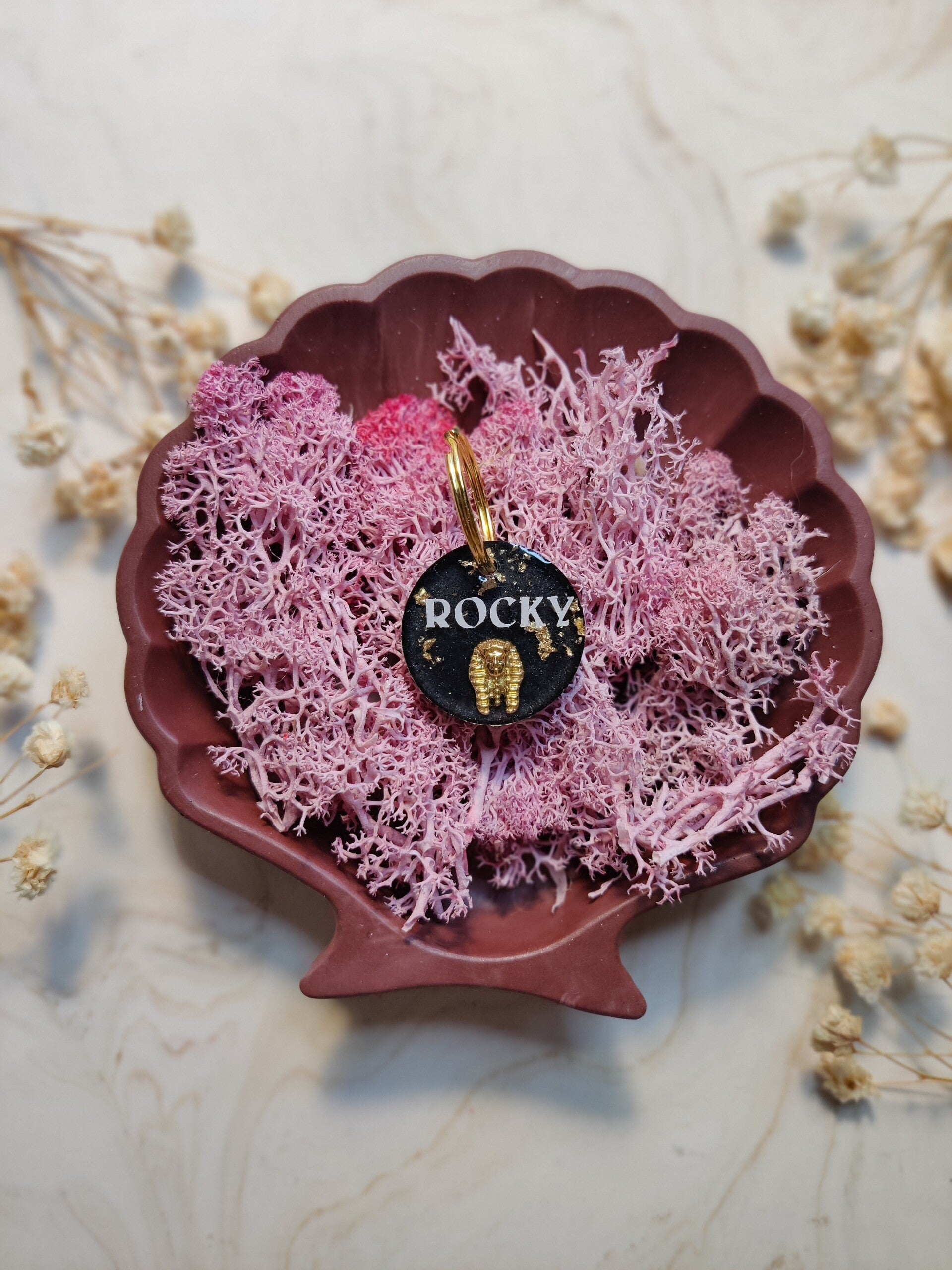 The tags have a black background with golden flakes and a special Egyptian theme. There are 6 options and they are available in the size S and M.