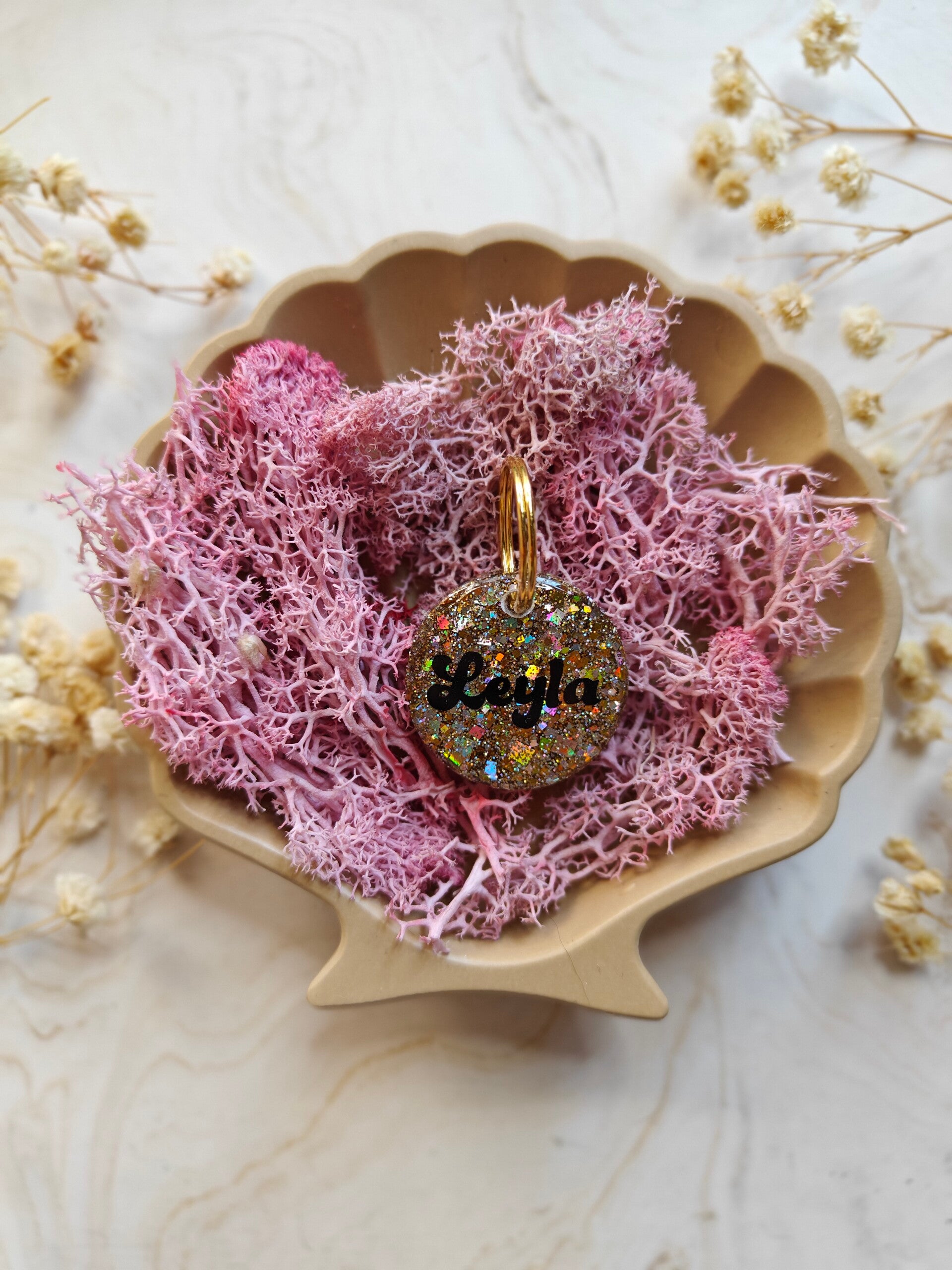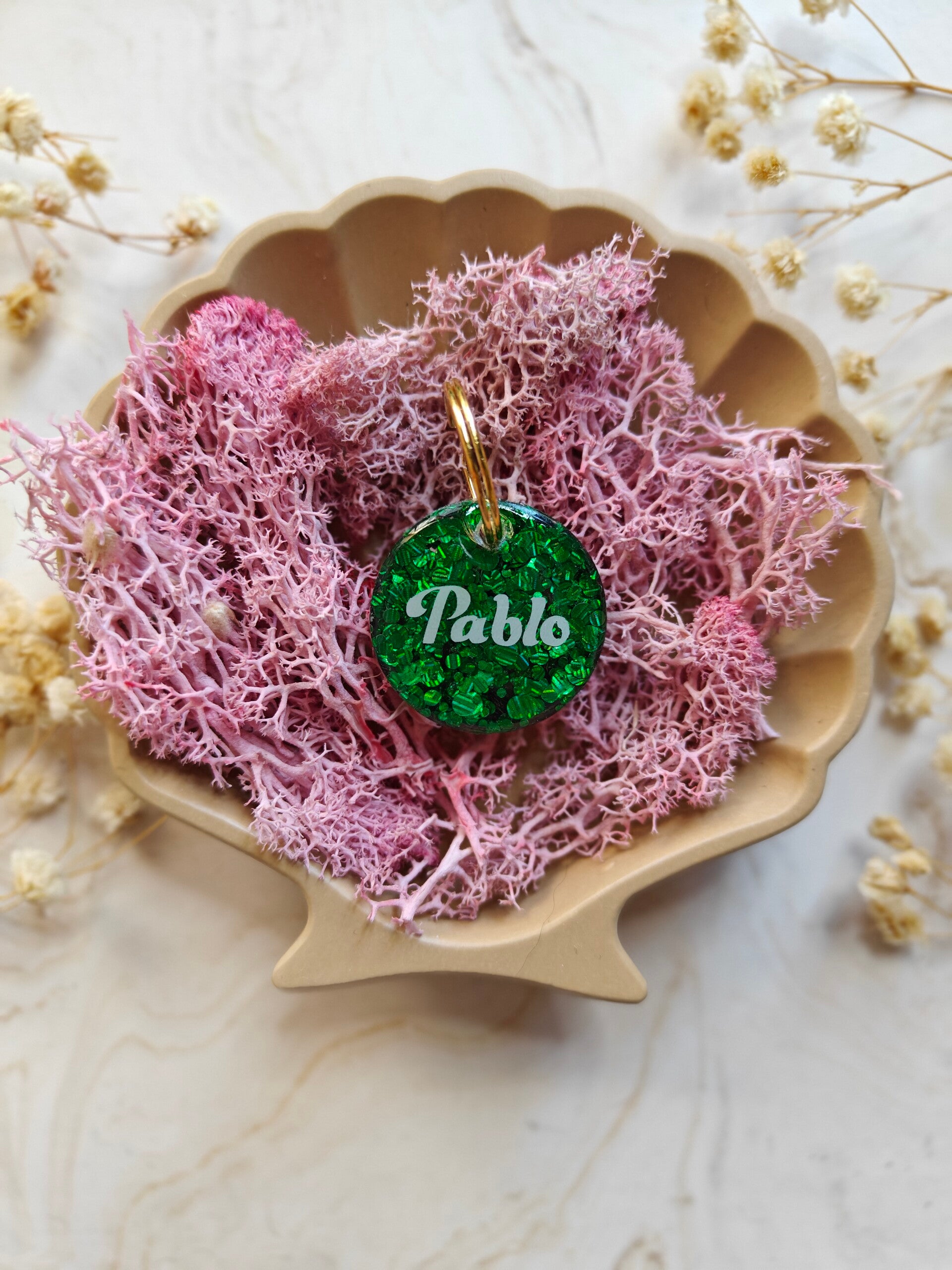 The premade tags are tags that already have been made and only need a name and phone number. The tags can be basic tags, glitter tags, neon tags, flower tags. These tags are in different shapes and are in size M!