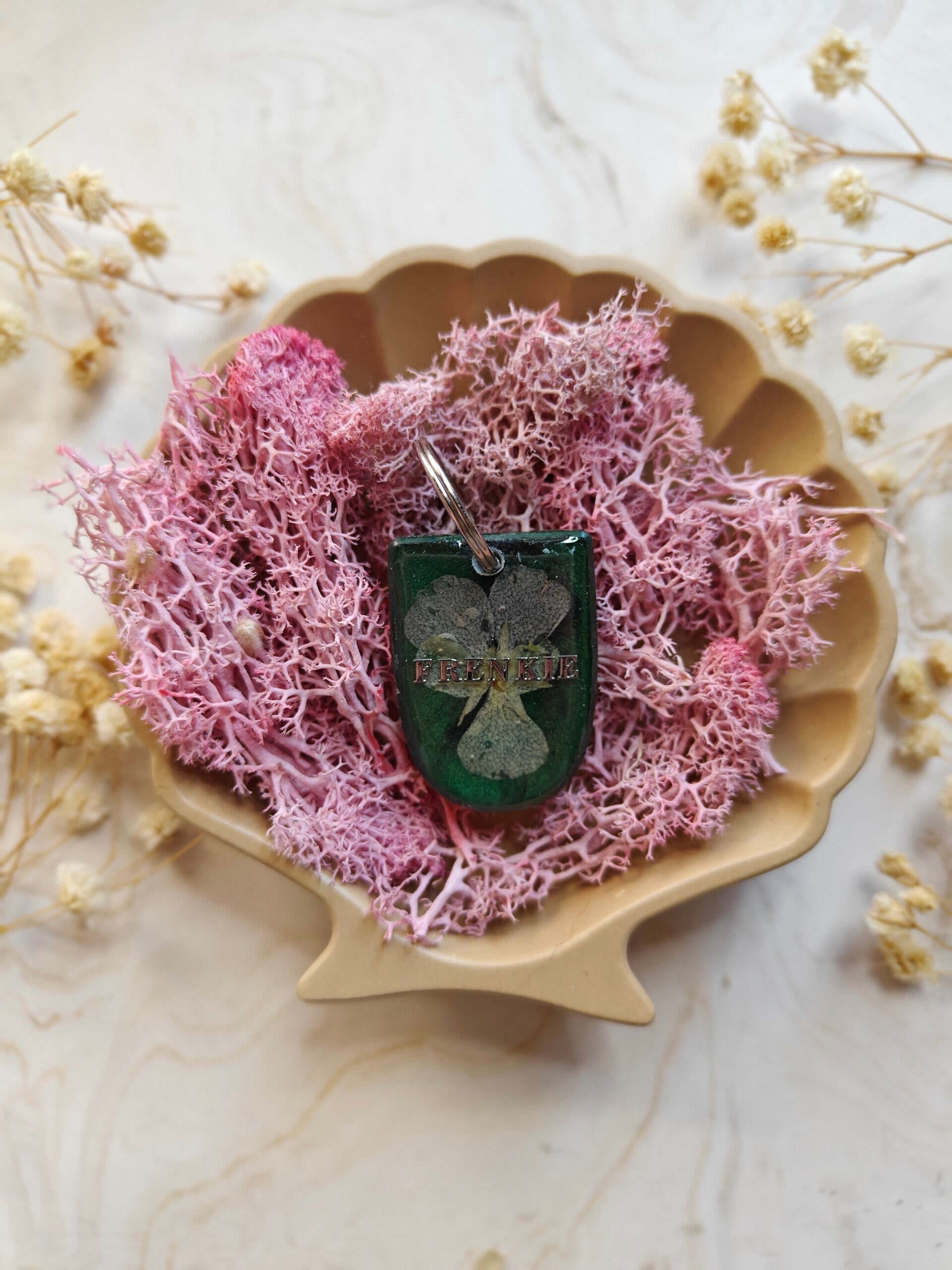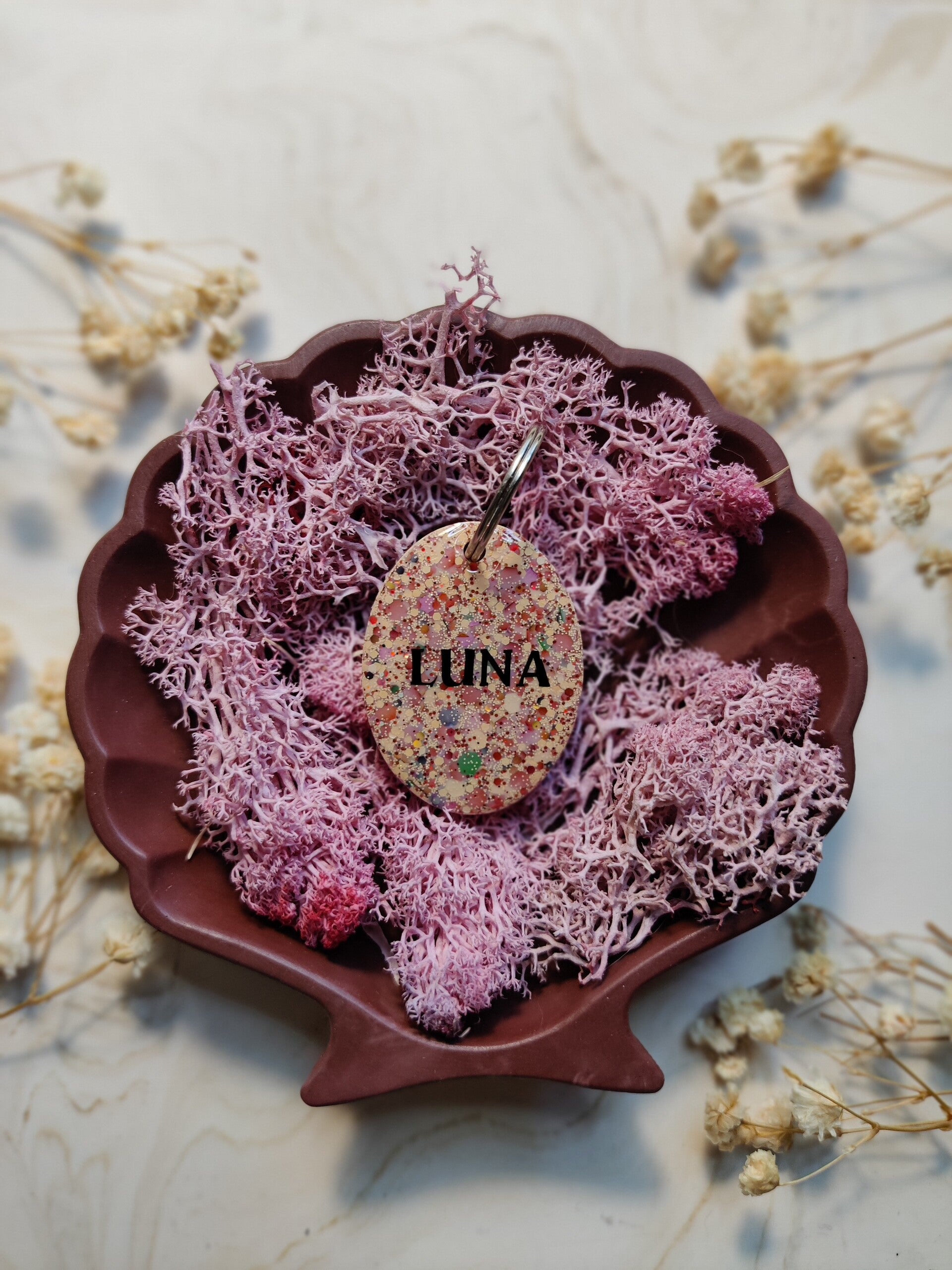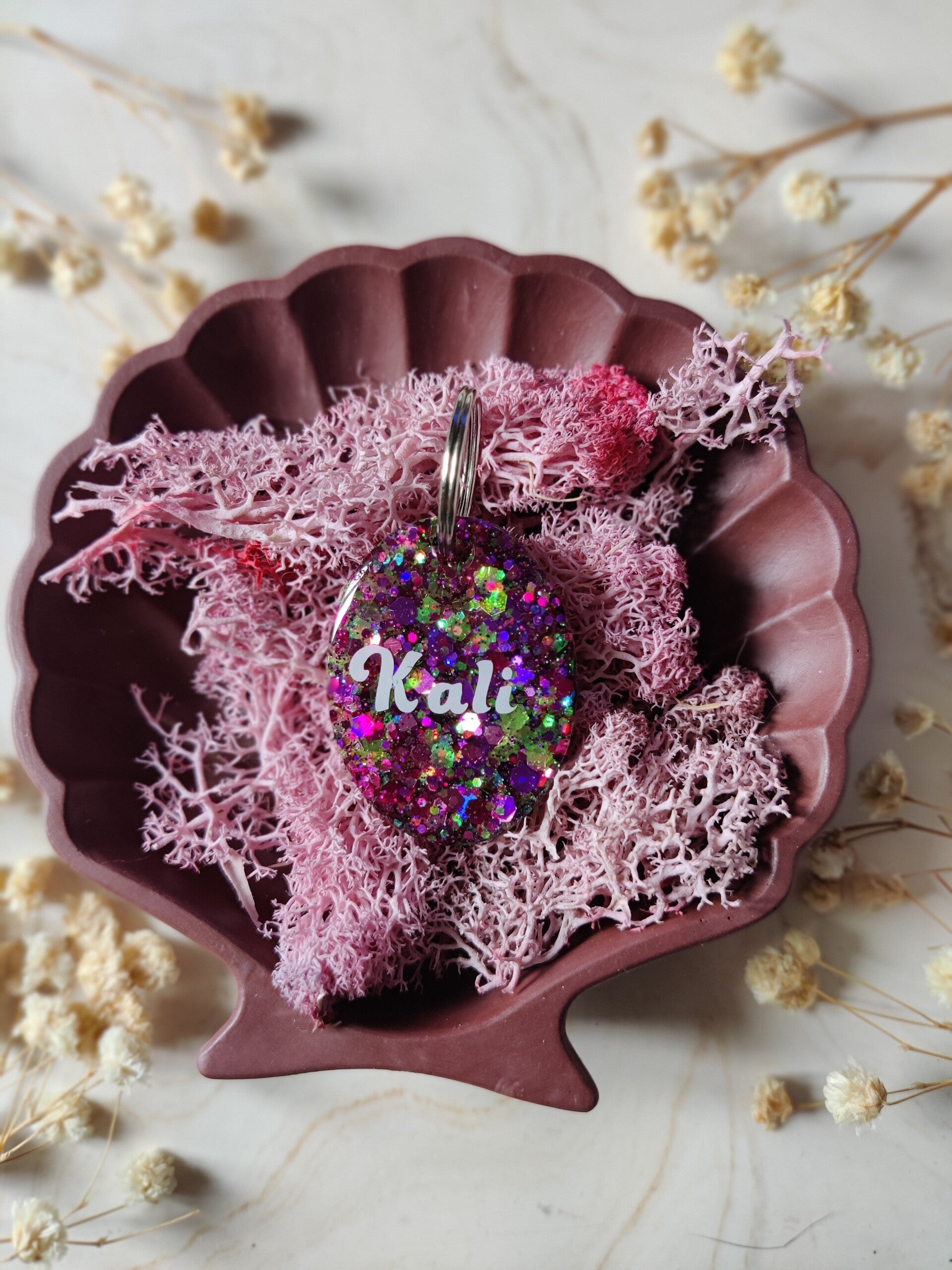 The premade tags are tags that already have been made and only need a name and phone number. The tags can be basic tags, glitter tags, neon tags, flower tags. These tags are in different shapes and are in size L!